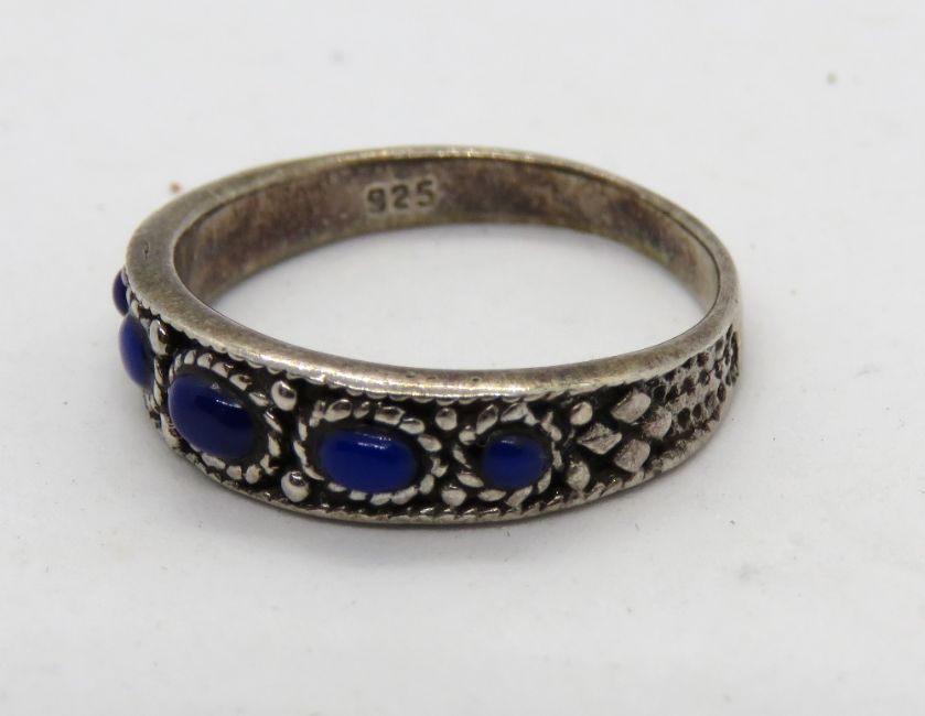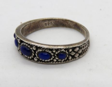 A silver and lapis lazuli ring, stamped 925, size Q.