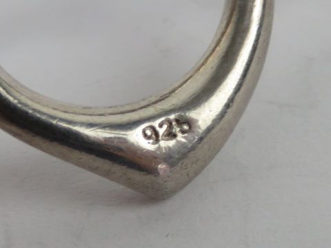 An HM silver bangle having heart design clasp, hallmarked for London, 5.6 x 5.2cm internal dia, 12.2g.
