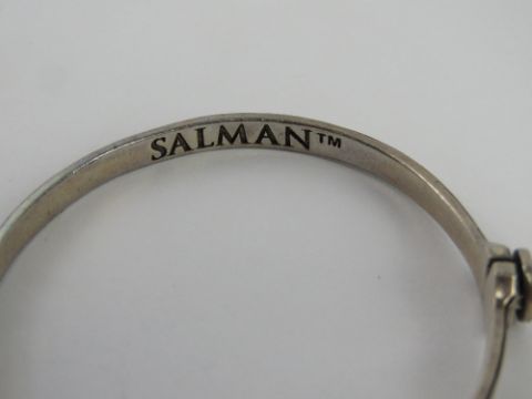 A bangle having card suits engraved pattern throughout made by Salman Los Angeles approx 5.5cm dia.