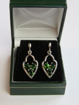 A pair of Russian diopside earrings 925 silver in presentation box.