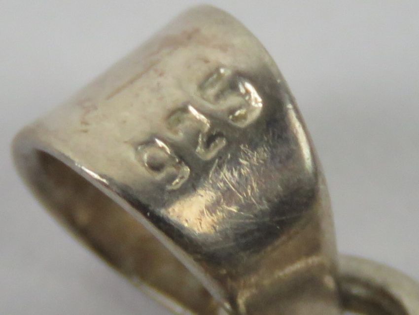 A silver floral cluster pendant, red coloured stones, stamped 925, 2.5cm inc bale.