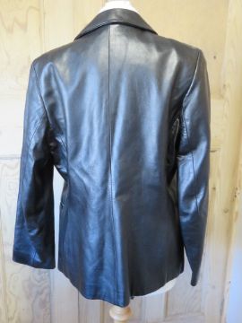 A Pasty Seddon Phase Eight black leather coat, size 14.