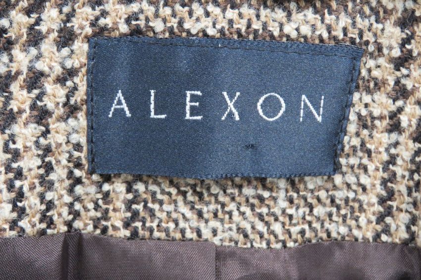 A ladies skirt suit by Alexon 97% wool, jacket size 12, skirt size 10. Jacket approximate measurements 40" chest, 27.5" length to back, 15" underarm sleeve. Skirt approximate measurements 30" waist, 30" length.