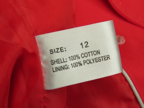 David Barry; a 100% cotton UK size 12 jacket in red.