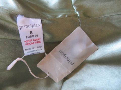 A green long length jacket by Principles, 48% wool, size 8.