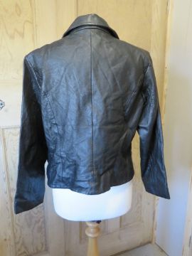 A black leather ladies coat by Amaranto, size 16.