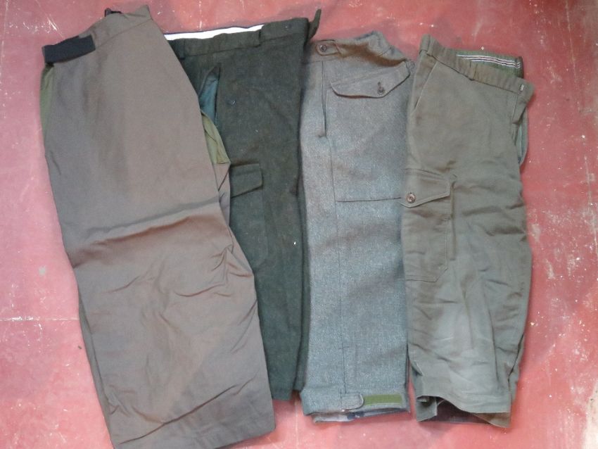 A pair of 70% wool shooting breeks size 38R, together with a pair of 60% wool tweed shotting breeks, a pair of Airguard shooting breeks and a pair of 100% cotton shooting breeks. Four items.