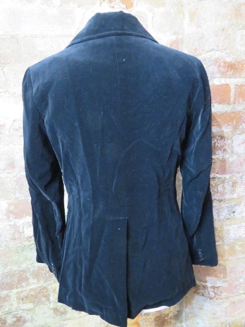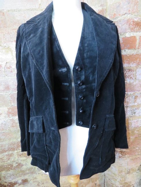 A ladies 100% cotton black velvet jacket made for Sears Roebuck & Co, size 10, with similar black velvet waistcoat size 14.