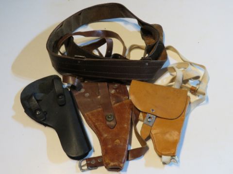 A US snub nose revolver shoulder holster and a Soviet PSM shoulder holster with a black holster and a brown leather belt.