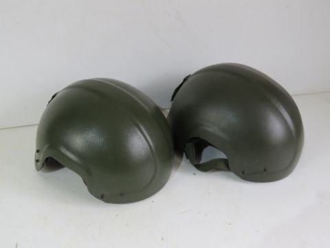 Two British Army Air Corp helmets, dated 1999 and 2005, one standard, one large size.