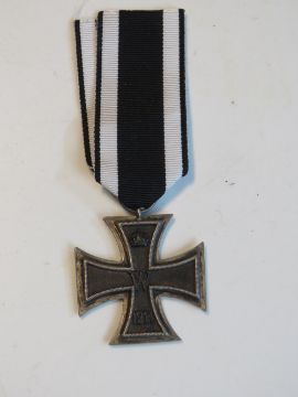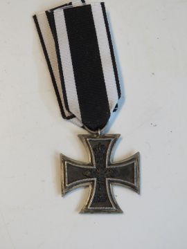 A reproduction WWI German Iron Cross with ribbon.