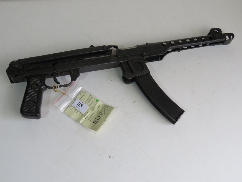 A deactivated PPS-43 SMG and accessories deactivated Polish PPS-43 7.62mm Sub Machine Gun. Latest EU Spec, with moving steel dummy bolt (under spring pressure), and safety. Together with three spare magazines, mag pouch, sling, cleaning rod, and oil bottle. With certificate.