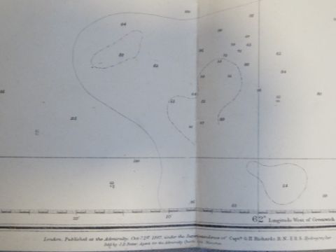 Navigational chart; engraved by J & C Walker, new edition published 1919, being British North America Nova Scotia S.E. Coast Sambro I to C. Canso, compiled from surveys of Captains Bayfield and Comr Orlebar, R.N., measuring approx 103 x 69cm.