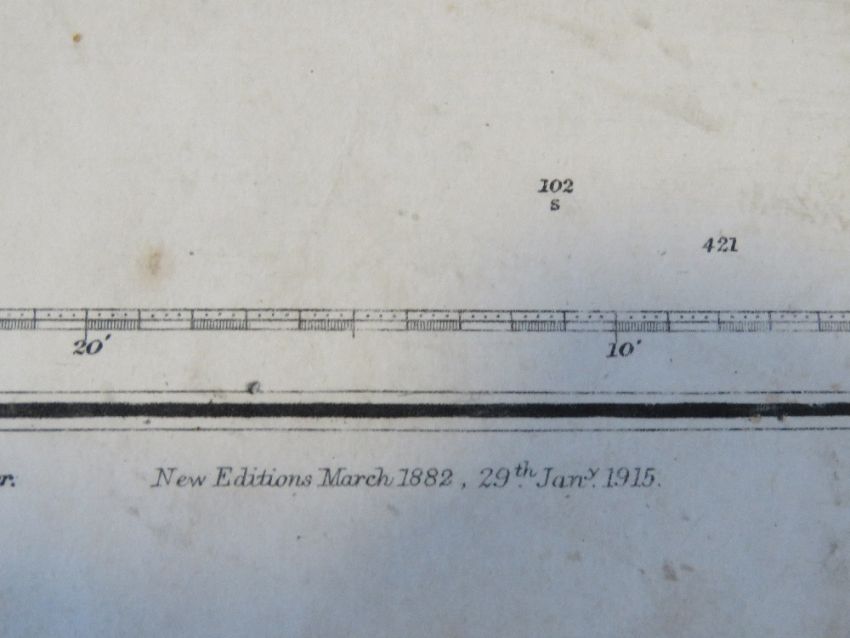 Navigational chart; engraved by J & C Walker, new edition published 9th Jan 1915, being British North America Nova Scotia S E Coast C.Sable to Sambro I, compiled from surveys of Captains Bayfield and Shortland and Comr Orlebar, R.N., measuring approx 102 x 68.5cm.