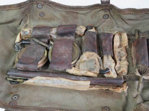 A CZ ZB26-30 7.92 WWII LMG gunners kit and tools. Within field roll containing oil bottles, brushes, springs tools, etc.