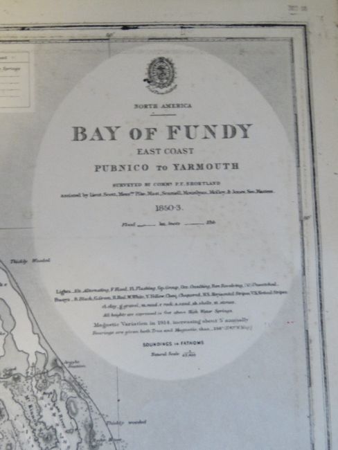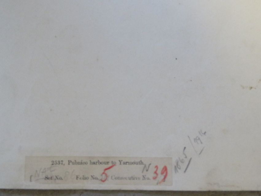 Navigational chart; engraved by J & C Walker, new edition published 9th Jan 1917, being North America, Bay of Fundy, East Coast, Pubnico to Yarmouth, compiled from surveys of Commr P F Shortland, measuring approx 102 x 69cm.