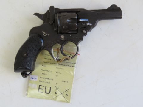 A deactivated Webley MK IV Snub Nosed Revolver. Latest EU spec, moving trigger, hammer, and rotating cylinder with clear chambers. With certificate.