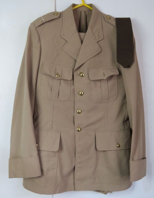 A matching US tunic and trousers, with tie, both labelled J Veyrier Paris 1970.