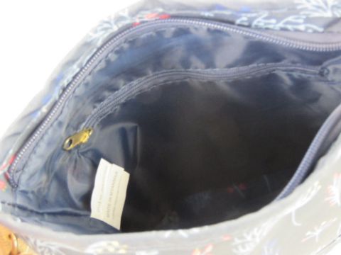 An 'as new' cross body bag in navy floral pattern by Nicole Brown 22 x 22cm.