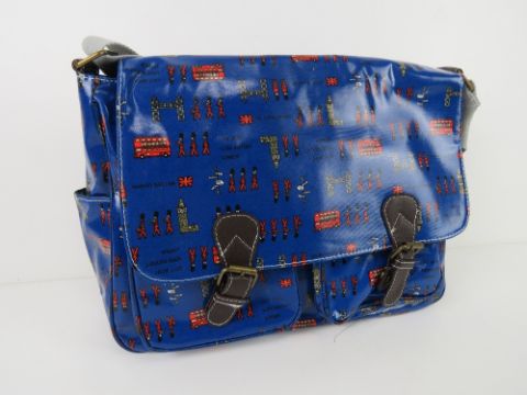 A London themed dark blue satchel type handbag 'as new', approx 35 x 26cm.