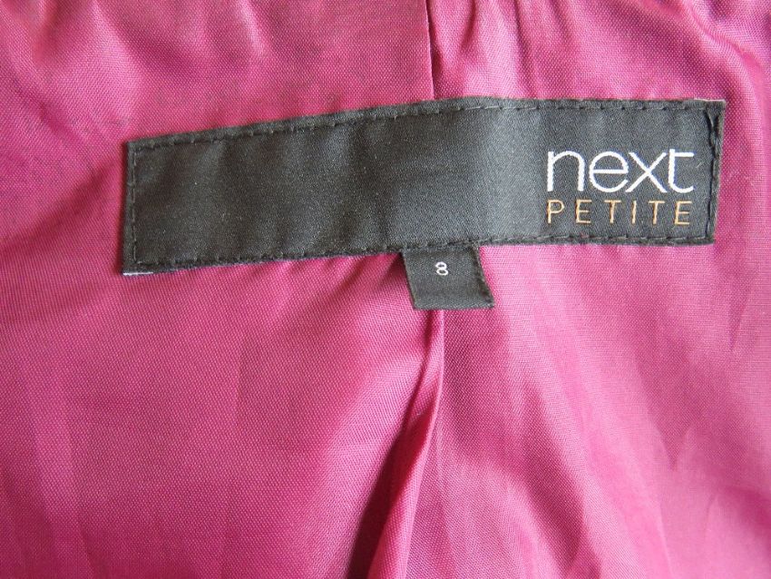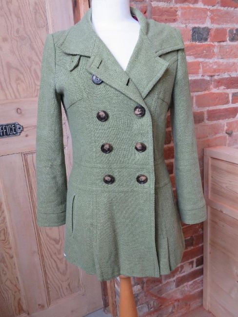 A Next Petite green coat, 75% wool, size 8.