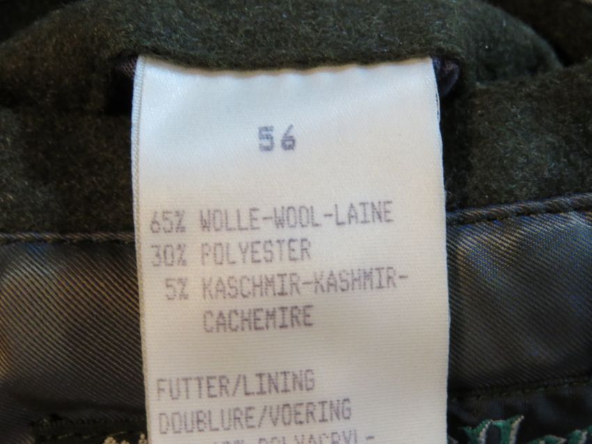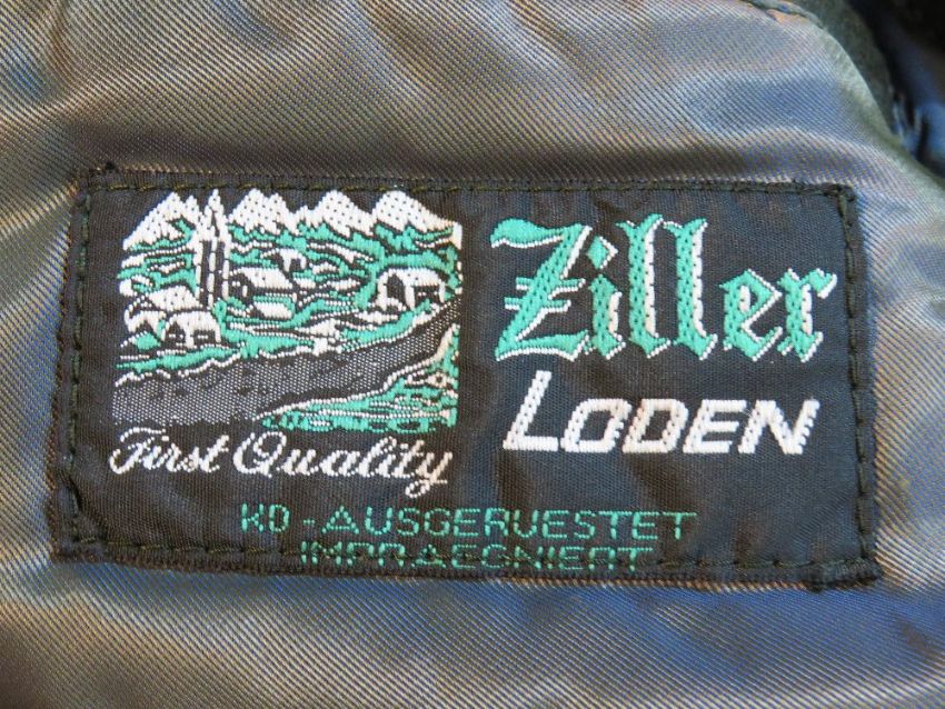 A 65% wool and 5% cashmere BSM Sportswear Company coat bearing label for Ziller Loden (size 56?).