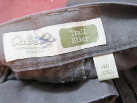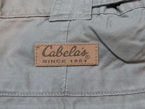 Two pairs of Cabela's trousers in green sizes 38 and 40.