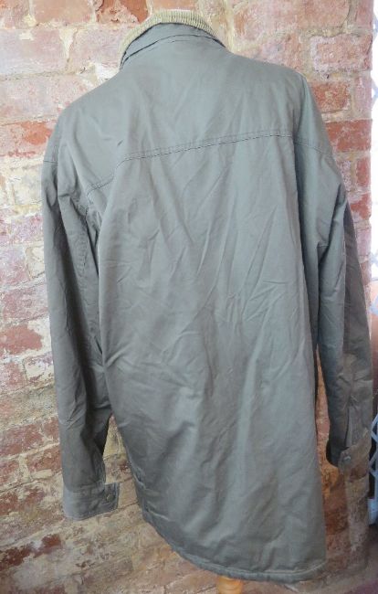 A 100% cotton coat having corduroy collar, size L.