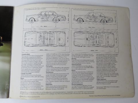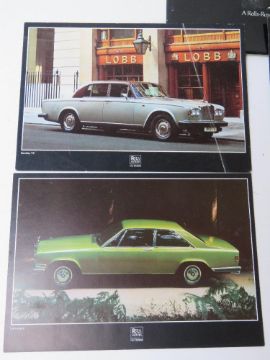 A Rolls Royce Motors Car Division brochure inc six publicity prints inc Corniche, Silver Shadow II, T2 and Silver Wraith II, dated 1975.