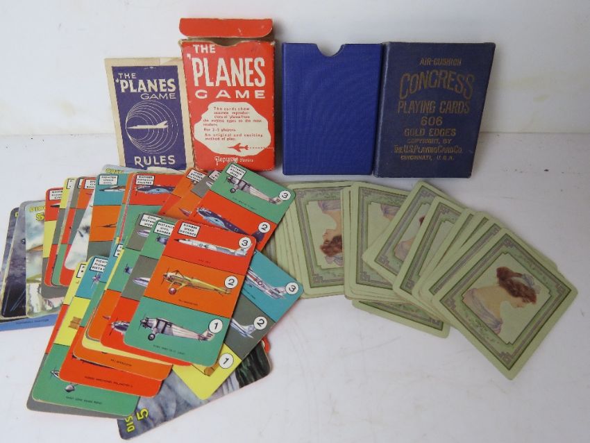 A set of Congress playing cards, 606 gold edges, by the US Playing Card Company, together with 'The Planes Game'.