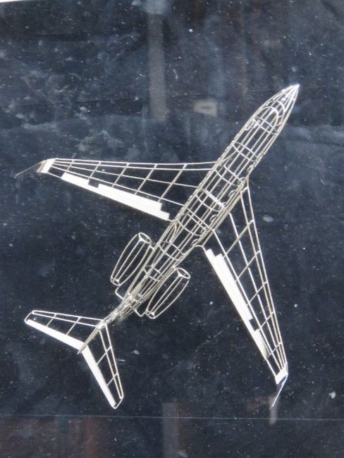 A framed 3D chrome wirework model of a Aeroplane 'Up and Away Aviation Detailing'. Overall size 53.5 x 44cm.
