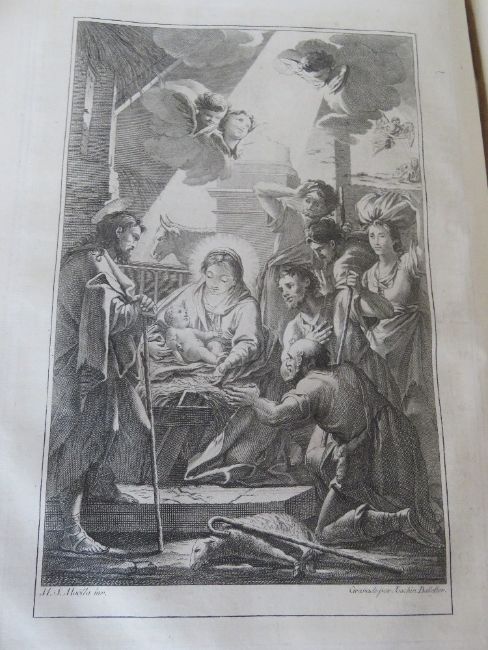 A large leather-bound bible dated 1782 to the frontispiece and in Latin having leather-bound wooden cover. Measuring 46 x 32 x 15cm. In need of restoration.