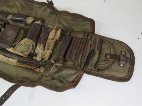 A CZ ZB26-30 7.92 WWII LMG gunners kit and tools. Within field roll containing oil bottles, brushes, springs tools, etc.