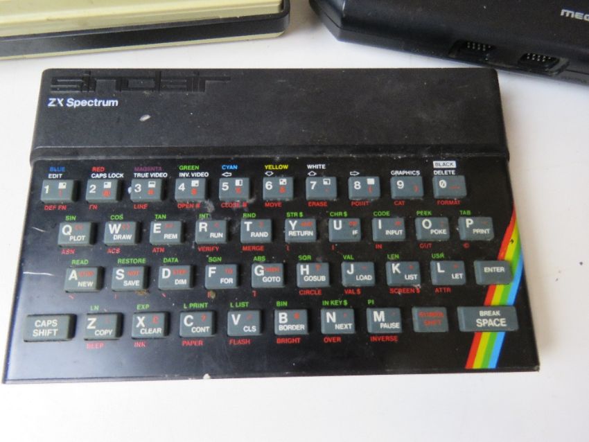 A Sega Mega Drive 2 games console, a Nintendo Game Cube, a Sinclair ZX Spectrum, a Commodore Datasette in box and a Bell and Howell computer compatible tape recorder. Five items. Disclaimer - all items in this sale are sold as untested without guarantee.