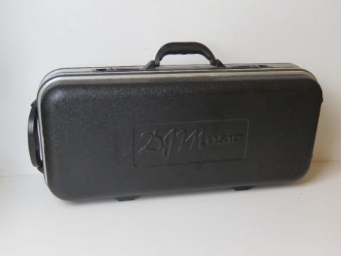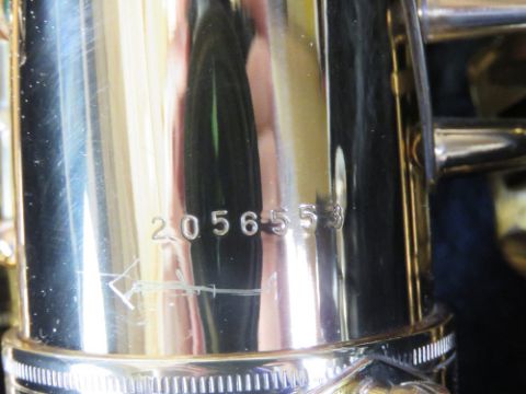 A saxophone numbered 2056553, in DJM Music case.