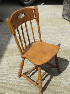 S. Bent & Brothers Gardner, Massachusetts Colonial Revival; a 'Rockport Maple' folding dining table together with four 'Antique 30' chairs of ring turned and stylised form. Chairs branded with S. Bent & Bros logo. Table 101 x 137cm extended.