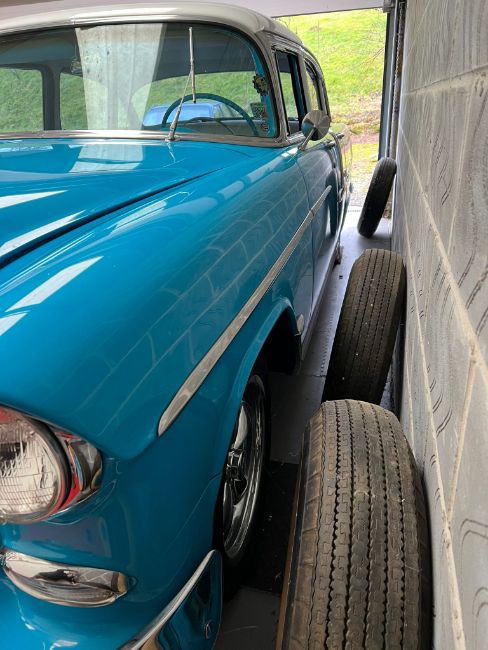 Raised on Krager wheels, with full set of spare original steel wheels and hubcaps.