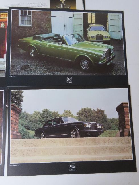 A Rolls Royce Motors Car Division brochure inc six publicity prints inc Corniche, Silver Shadow II, T2 and Silver Wraith II.