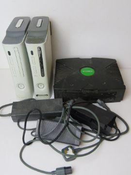Two XBox 360 and an XBox console inc three associated chargers. Disclaimer - all items in this sale are sold as untested without guarantee.