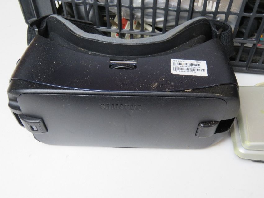 A quantity of assorted electronics inc Samsung VR headset, Nintendo DS, Gamecube power supply, Commodore power supply, Veats headphones, etc. Disclaimer - all items in this sale are sold as untested without guarantee.