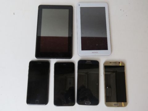 An Amazon Kindle, an Archos 70C Neon tablet, two iphones and two Samsung phones. Disclaimer - all items in this sale are sold as untested without guarantee.