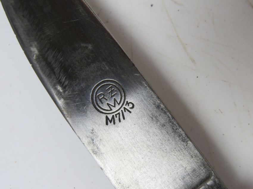 A WWII German Hitler Youth knife with scabbard, leather frog and cover, blade marked RZM M7/13.