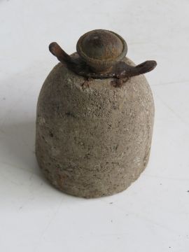 An inert WWII German concrete AP mine with an egg grenade fuse.