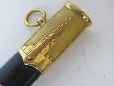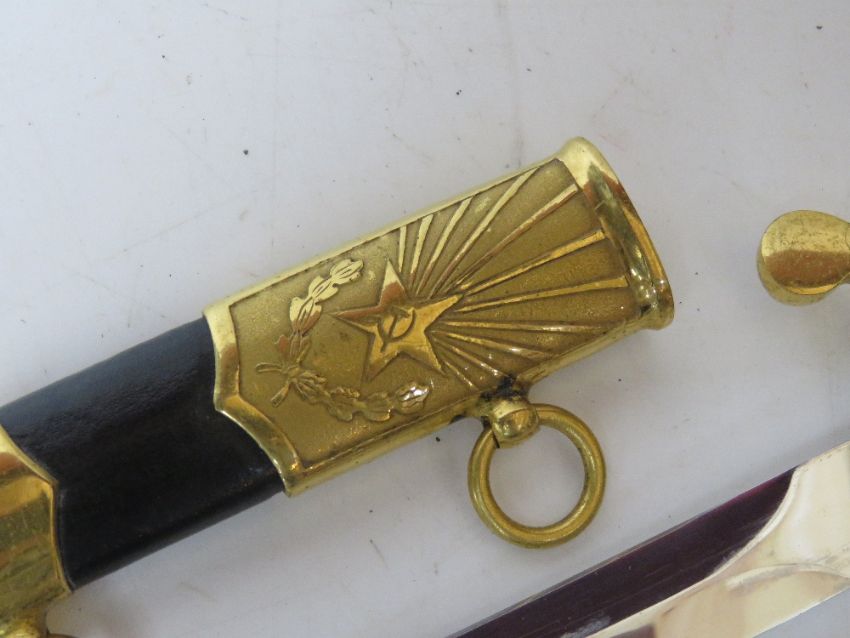 A Russian 1957 Army Officer's dagger with scabbard, with markings on both sides of the blade.