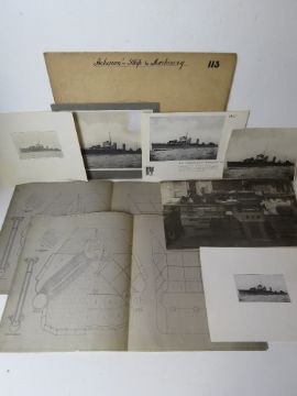 A quantity of assorted military ship photographic prints, blueprints, etc.