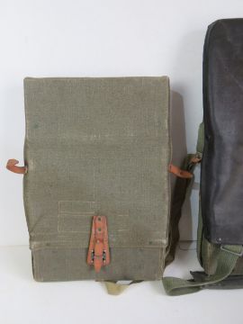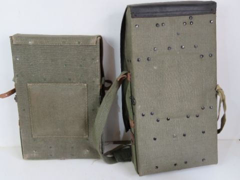 A British Military Camp bed, together with a CZ ZB26-30 LMG 7.92 magazine and loader carry bag, a Polish 26.5mm flare pistol bag and two Soviet Military Cold War Era RPG-2 rocket launcher back pack with straps.