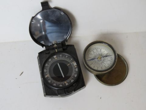 A brass stopwatch together with a monocle and two compasses, found with the effects of Capt J A Moor.