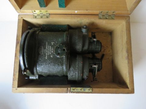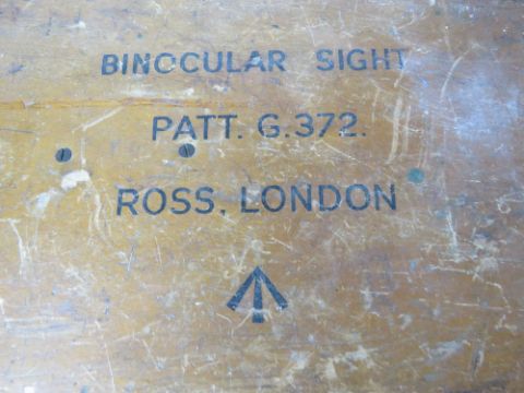 A Ross of London Binocular Gunsight having broad arrow to binocular and fitted wooden box, patt. G372, No 116949.