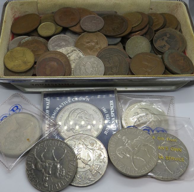 A quantity of assorted commemorative and cupro-nickel coinage including Victorian penny.