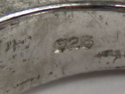 A HM silver ring having brushed and polished sections and central rectangular pale blue stone, hallmarked 925, size N.